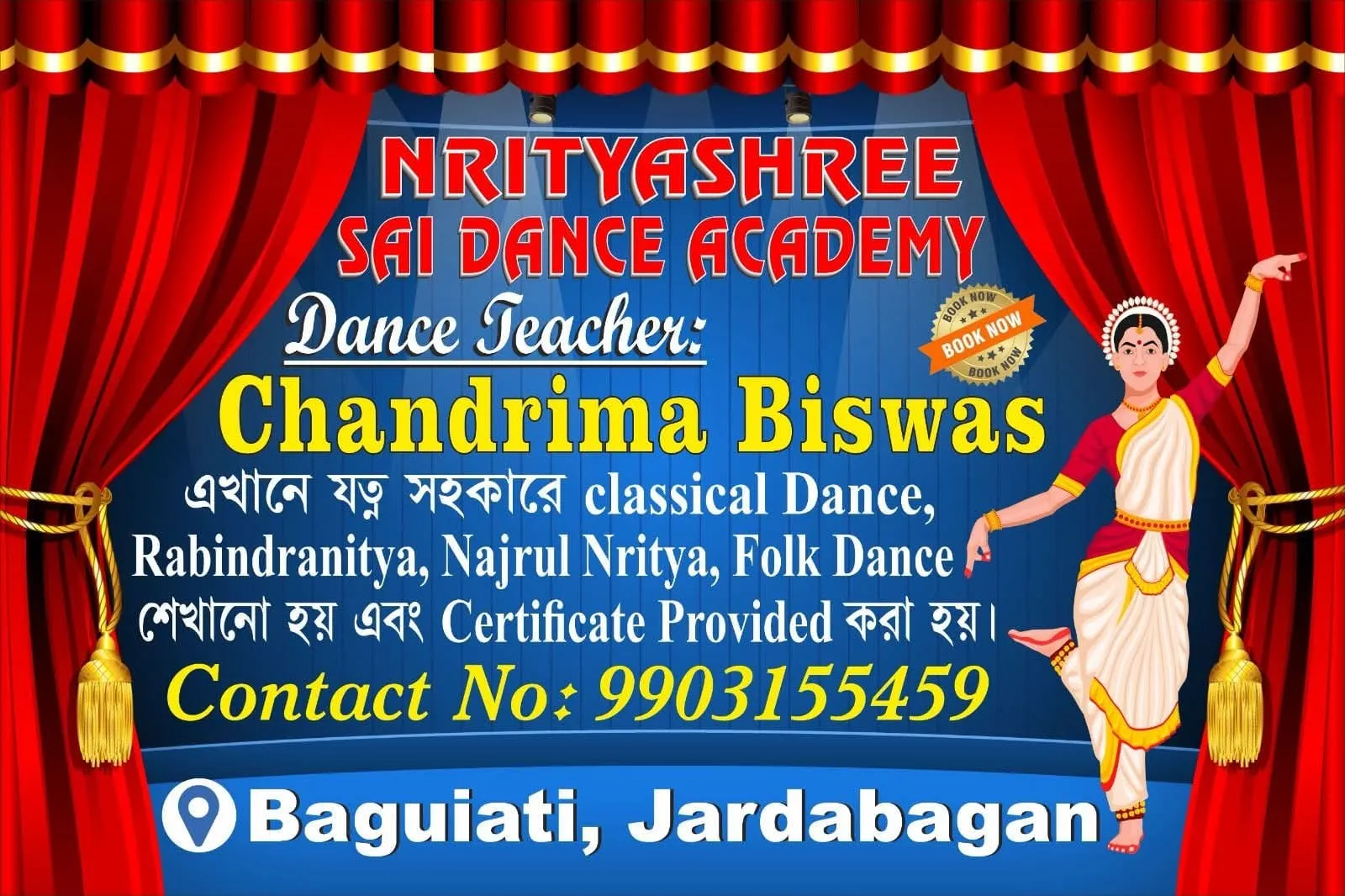 The academy is led by Principal Chandrima Biswas, an experienced and passionate dance teacher whose dedication and artistic vision inspire students to achieve excellence in dance and cultural expression.